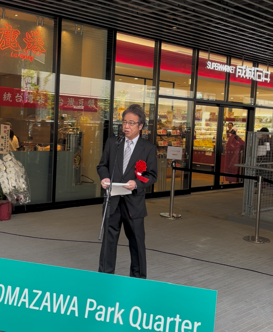 2025年11月11日(火)、「KOMAZAWA Park Quarter」(駒沢パーククォーター)の開業に伴い、グランドオープニングセレモニーが開催されました。セレモニーでは、弊社代表取締役林大助、ご来賓の方からのご挨拶に続き、建物を取り囲んで50人でのテープカットが行われました。緑とテラスがつなぐ、駒沢エリアの新拠点、駒沢エリアの新たなランドマークとして、地域に開かれた新しいまちづくりの拠点を目指してまいります。